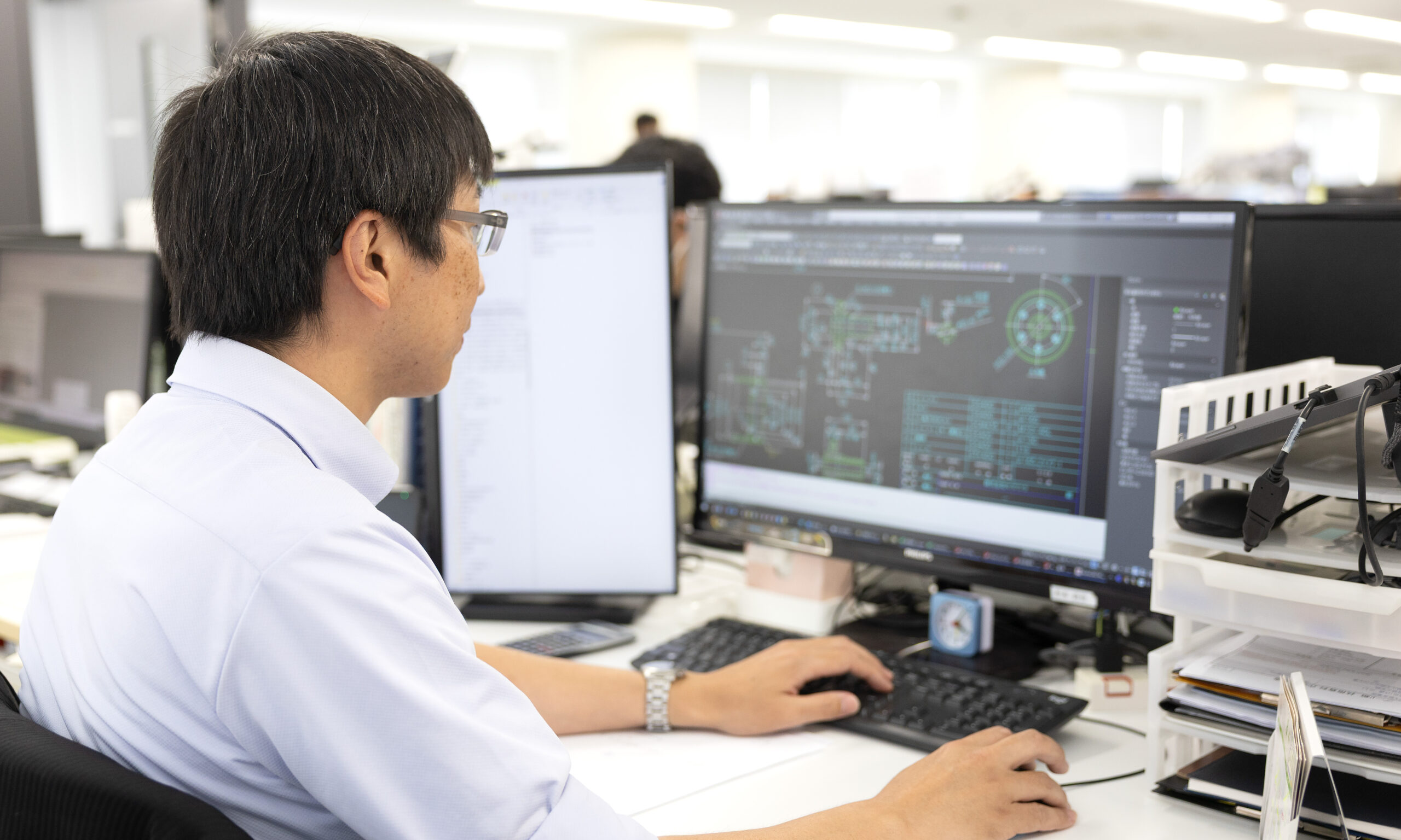ソリューション推進部 本社設計課に所属しています。お客様の要望に合わせて製品の提案・開発・改良を行い、図面作成を通して、求められた製品のイメージを具体的な形にする部署です。